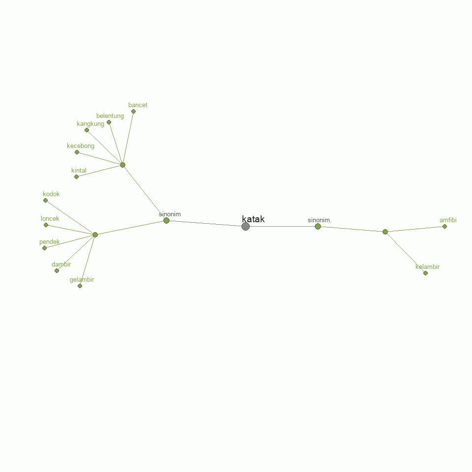 Sinonim kata dari katak: bancet, belentung, kangkung, kecebong, kintal. kodok, loncek, pendek, dambir, gelambir. kelambir, amfibi.