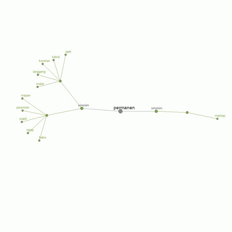 Sinonim kata dari permanen: ajek, kekal, konstan, langgeng, malar. mapan, persisten, stabil, tetap, baka. mantap.