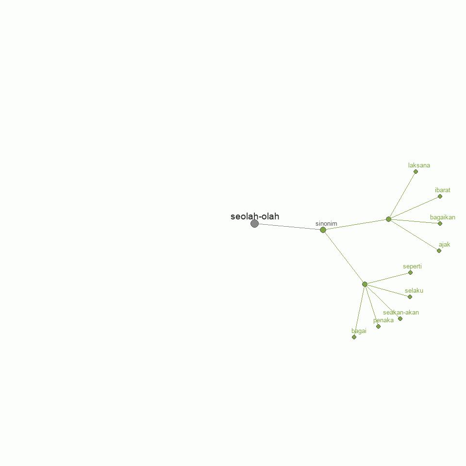 Sinonim kata dari seolah-olah: bagai, penaka, seakan-akan, selaku, seperti. ajak, bagaikan, ibarat, laksana.