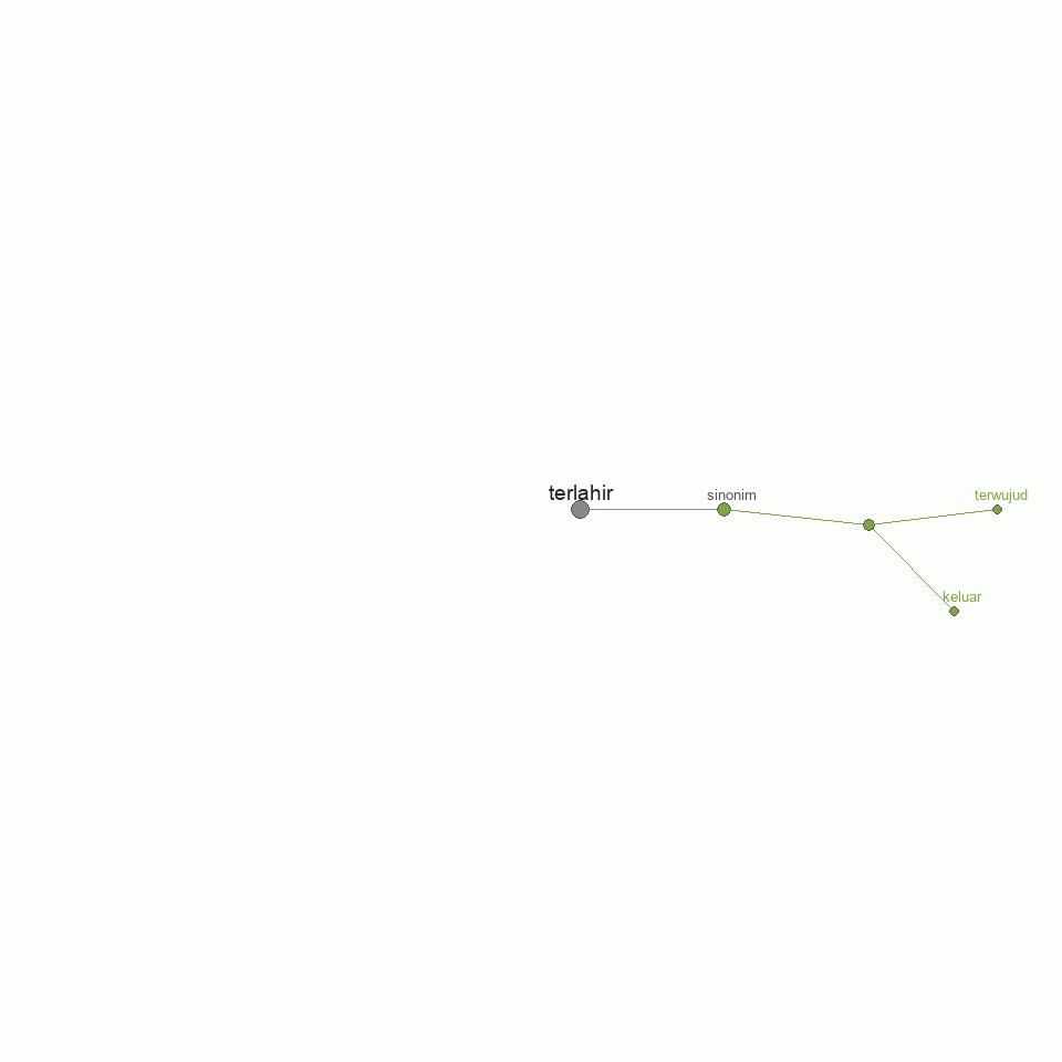 Sinonim kata dari terlahir: keluar, terwujud.